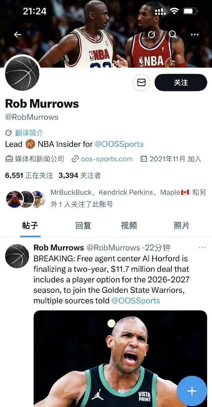 听起来像“萝卜摸肉丝”的Rob Murrows,他的X上3394个粉丝,没有认证。Shams和Stein等大佬至今沉默没有跟进,不过我们的各种媒体网站等不及了直接都转发了
